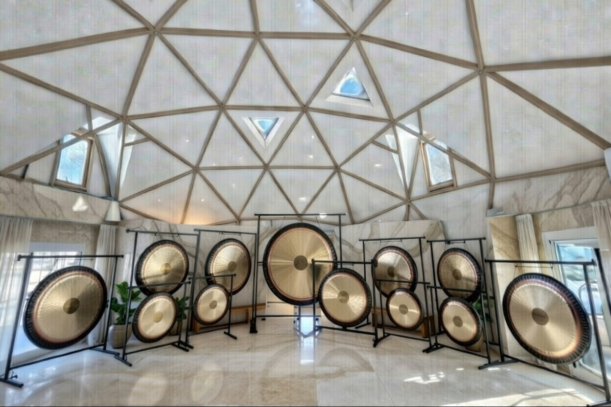 Imagine arriving to an oasis designed by nature's geometry, where the stresses of daily life dissolve and coherence emerges under the vibrations of harmonizing gongs, crystal bowls and other therapeutic instruments.Â
